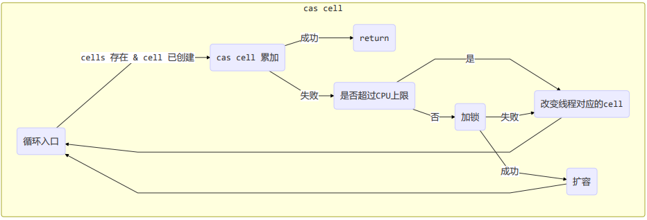 // 有竞争, 改变线程对应的 cell 来重试 cas