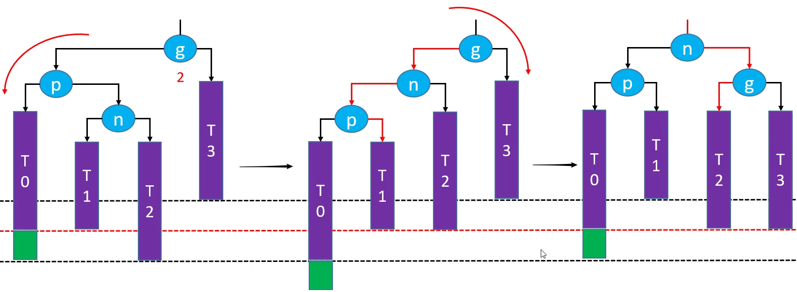 //类型三:parent是红色且uncle不是红色(需要旋转的四种情况)