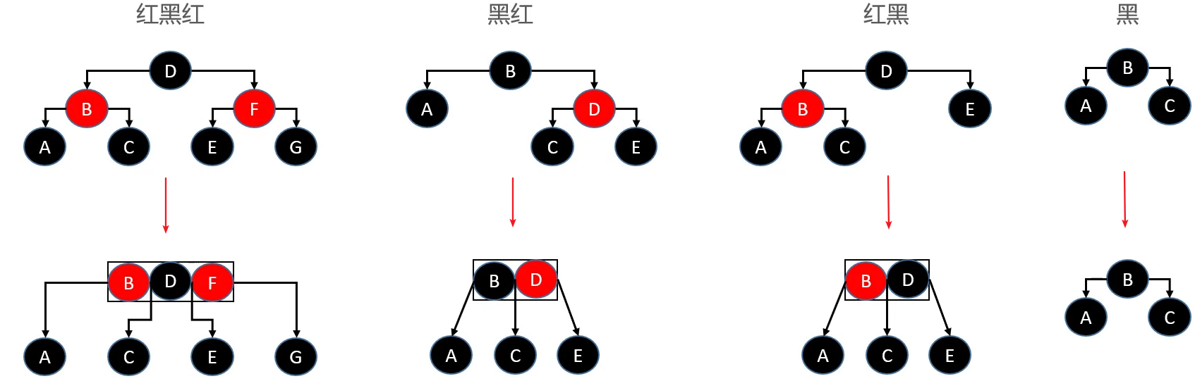 //兄弟节点没有一个红色子节点,父节点要向下向子节点合并