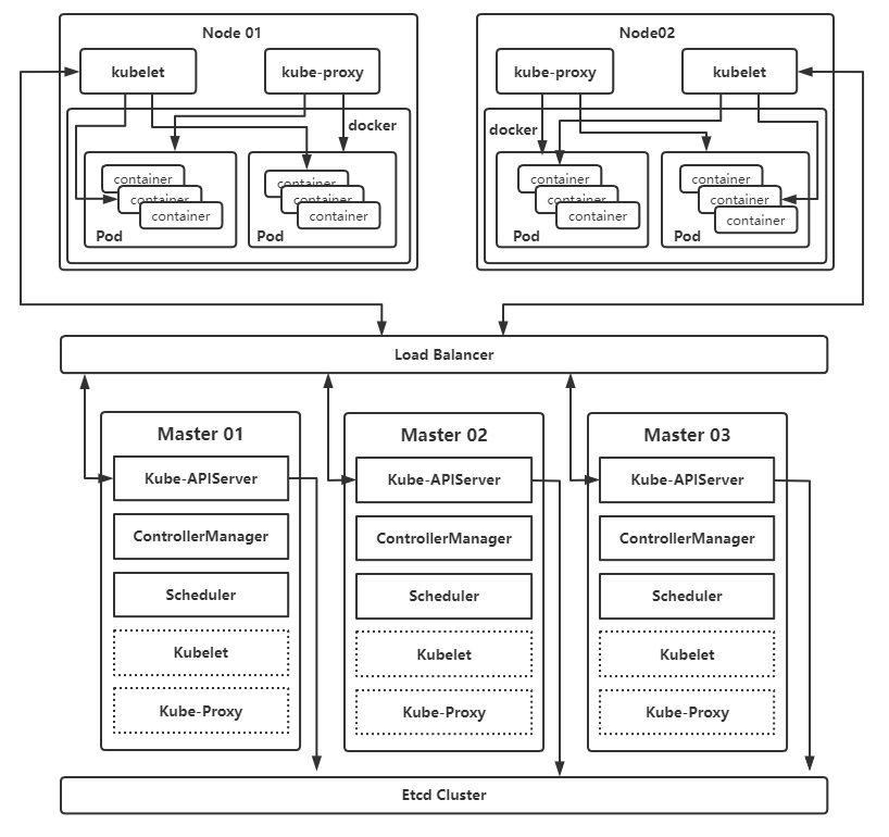 无状态组件,是唯一一个直接和Etcd通信的Kubernetes组件,可以直接进行横向扩容。 - Scheduler和Controller: