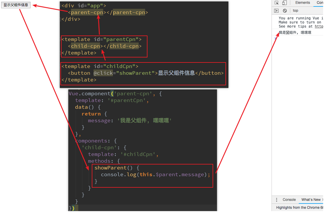 </html>父子组件的直接访问方式 - $children或$refs / $parent