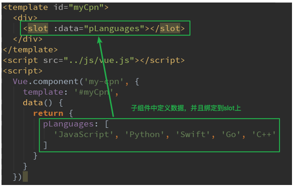 我们先提一个需求:子组件中包括一组数据,比如:pLanguages: ['JavaScript', 'Python', 'Swift', 'Go', 'C++']。需要在多个界面进行展示:
