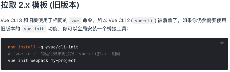 Vue CLI3的版本,如果需要想按照Vue CLI2的方式初始化项目时不可以的。可以使用如下方式在安装Vue CLI3的基础上拉取2.x的模板。