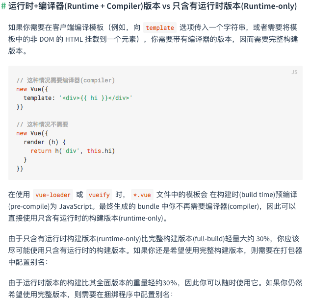 简单总结:如果在之后的开发中你依然使用template,就需要选择Runtime-Compiler。如果你之后的开发中使用的是.vue文件夹开发,那么可以选择Runtime-only