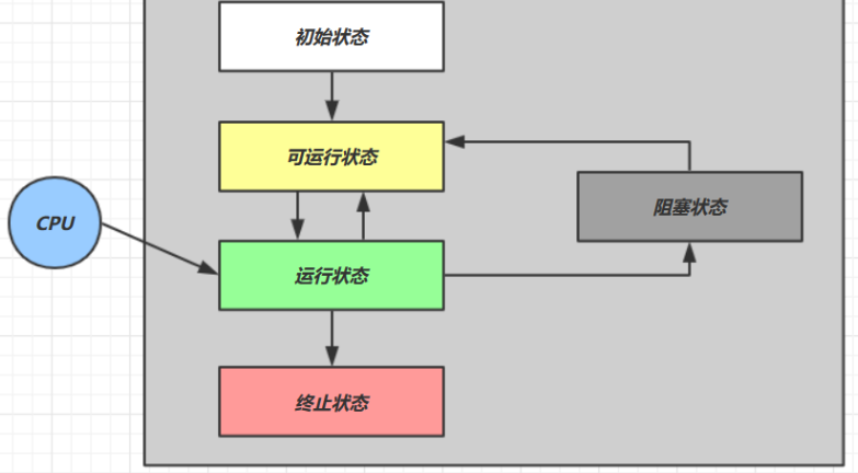 可运行状态、运行状态和阻塞状态(由于 BIO 导致的线程阻塞,在 Java 里无法区分,仍然认为是可运行) - **BLOCKED ** 、WAITING、TIMED_WAITING 都是 Java API 层面对