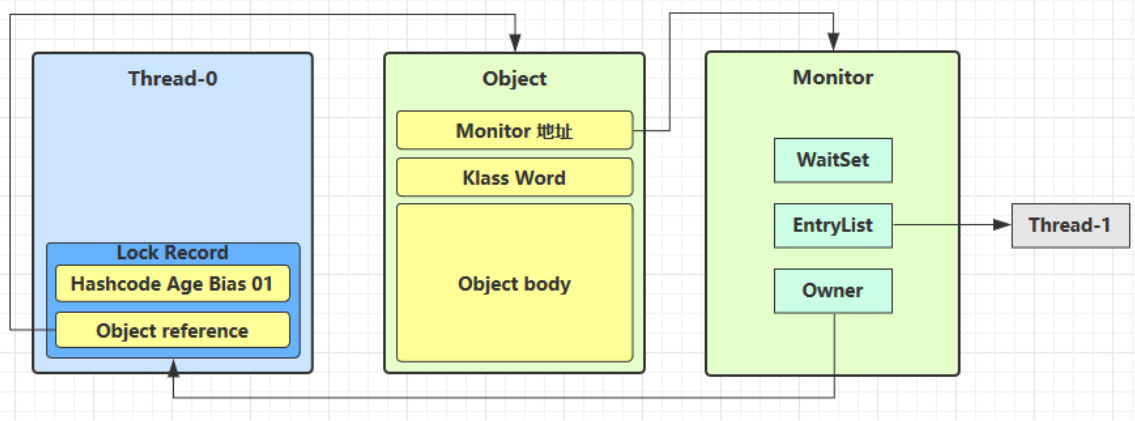 - 即为 Object 对象申请 Monitor 锁,让 Object 指向重量级锁地址