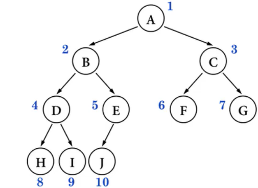 理解:对节点从上至下、左至右开始编号,其所有编号都能与相同高度的满二叉树中的编号对应。
