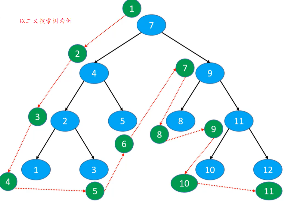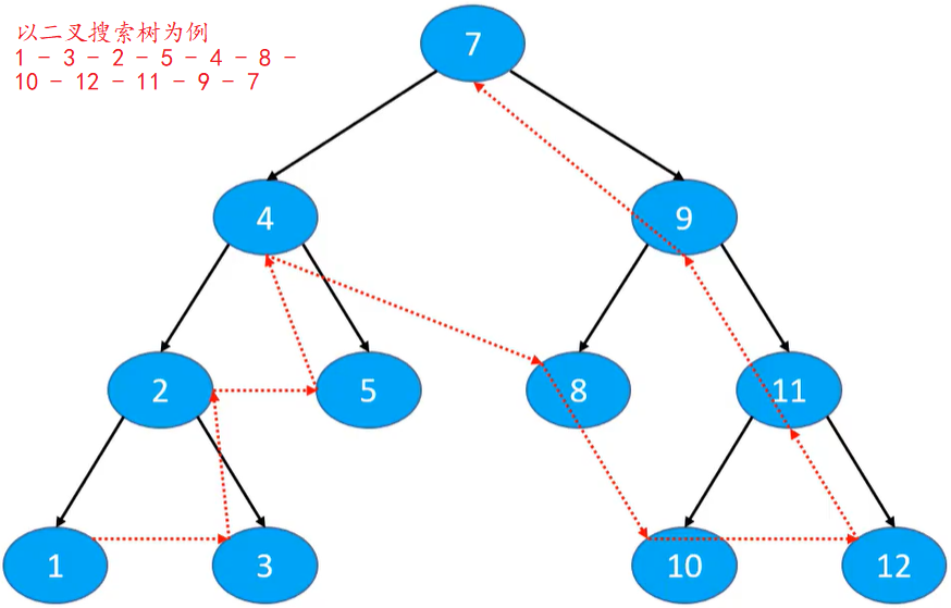 访问顺序 :中序遍历左子树、根节点、中序遍历右子树