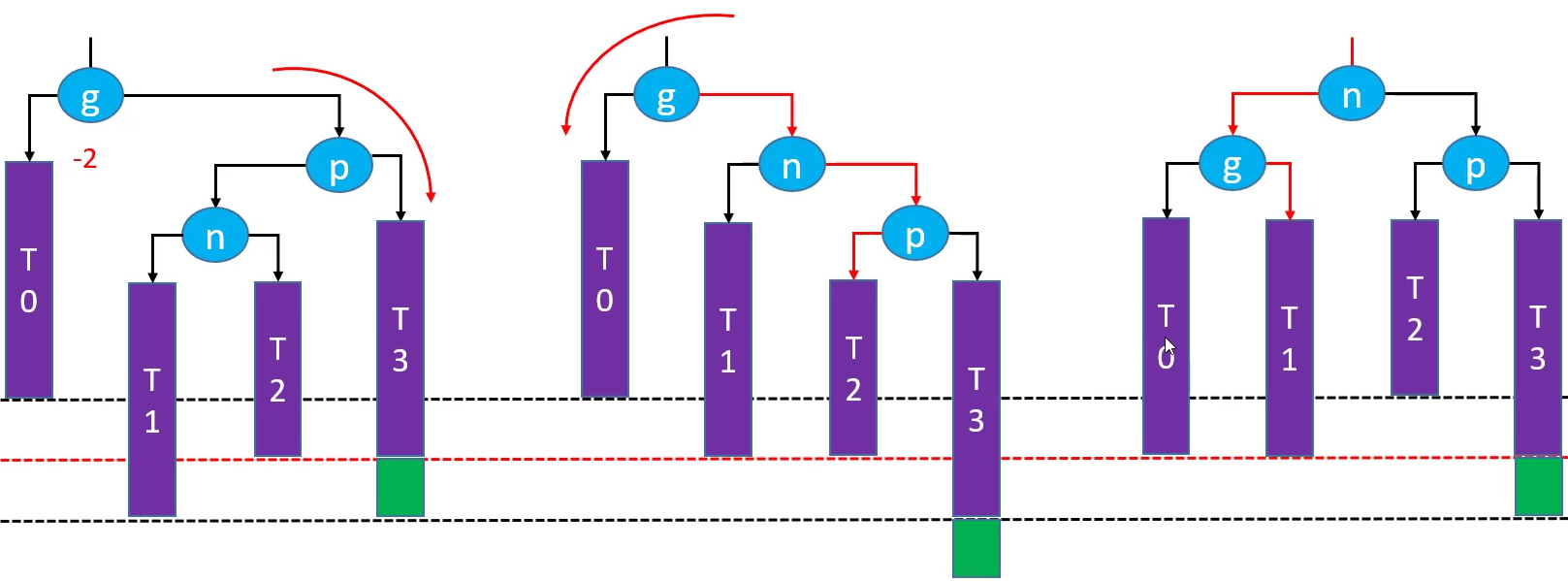 //类型三:parent是红色且uncle不是红色(需要旋转的四种情况)