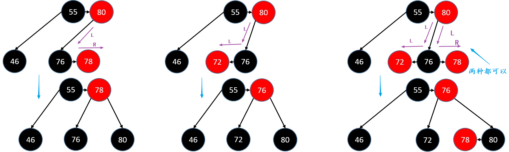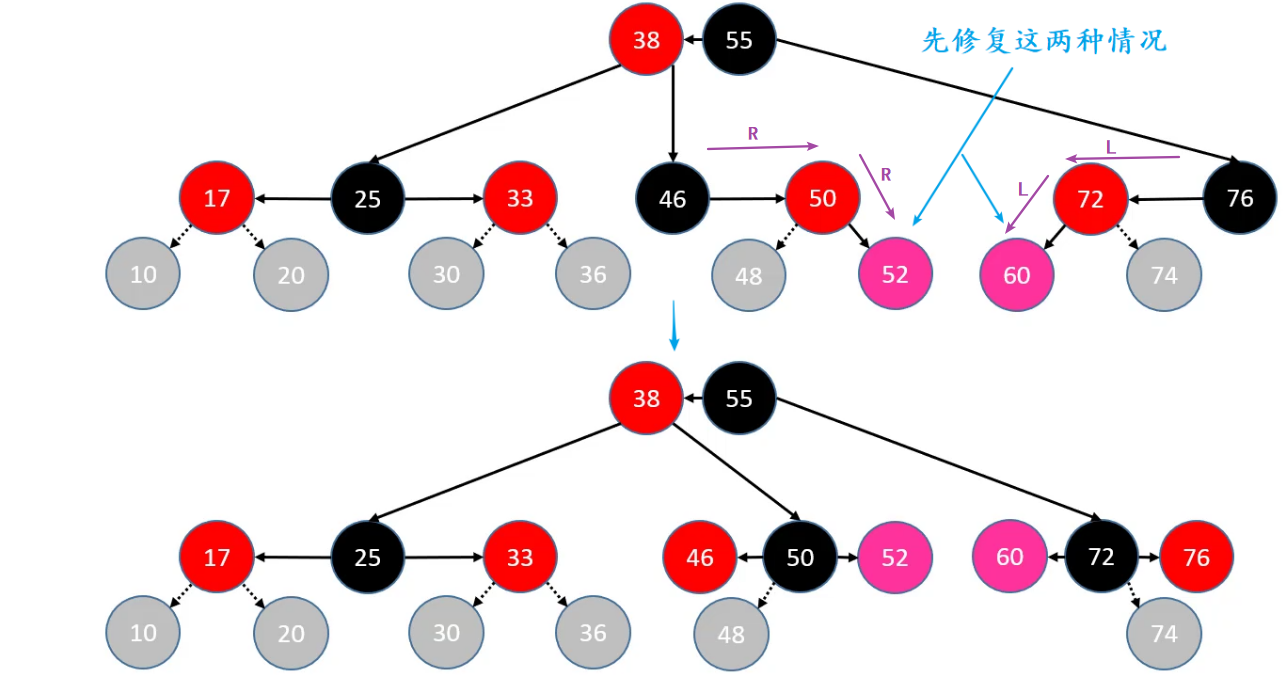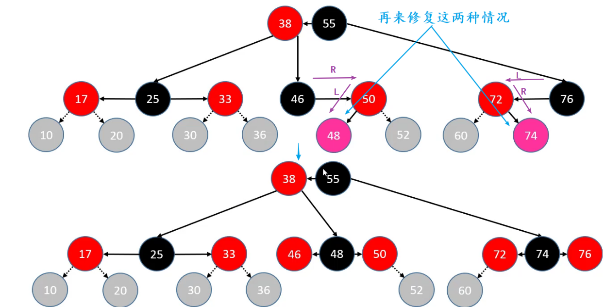 //兄弟节点必然是黑色