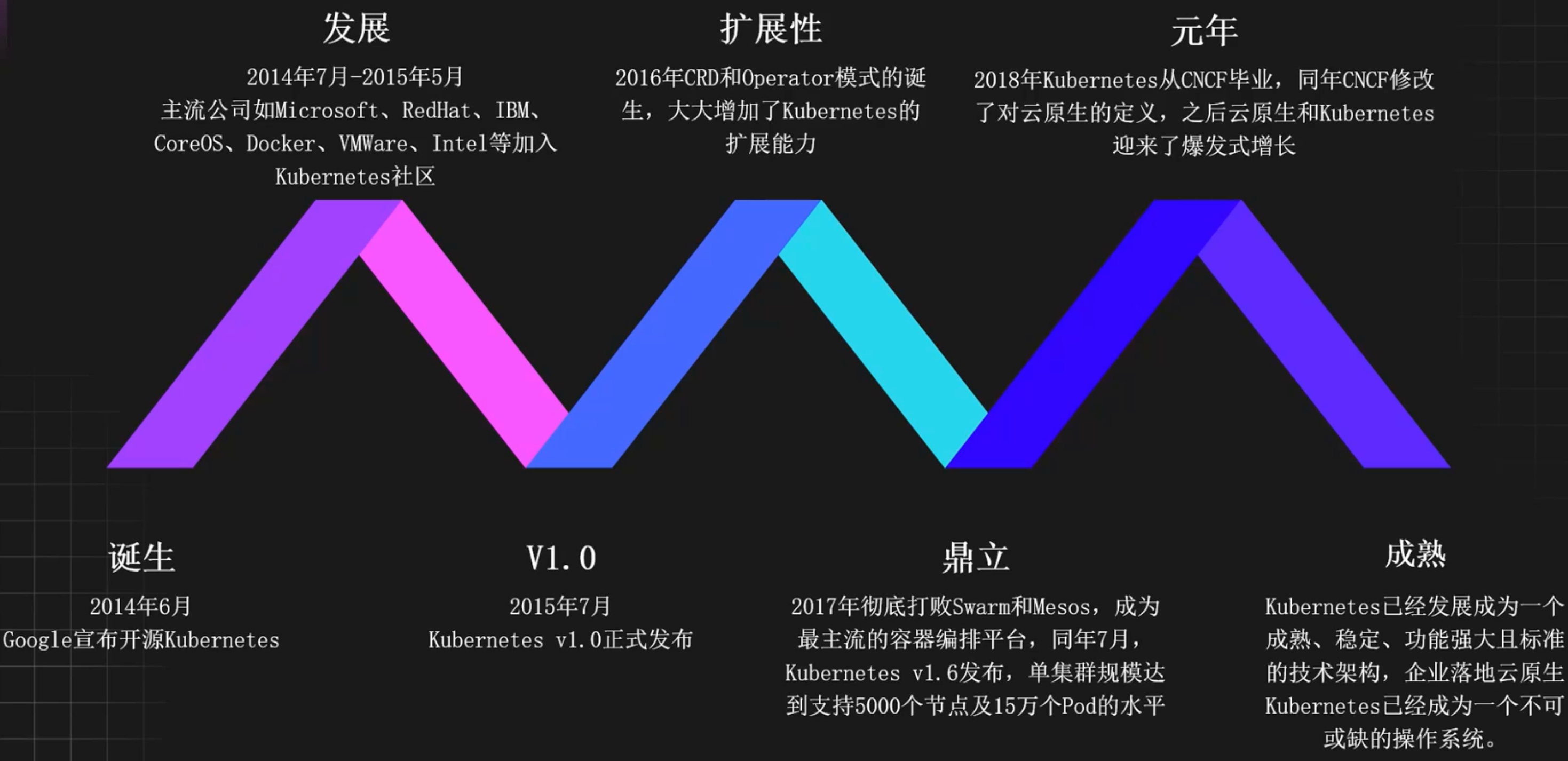 Kubernetes的前身是谷歌内部的Borg系统,是基于谷歌 15年生产环境经验的基础上开源的一个项目。由谷歌设 计并在2014年开源,之后捐献给了CNCF,称为CNCF第一 个开源的顶级项目,目前已成为云原生领域的标准。