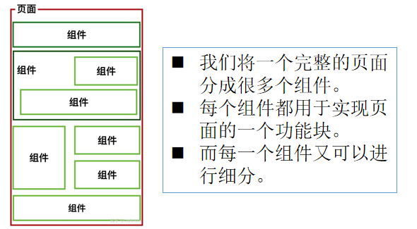 组件化也是类似的思想:如果我们将一个页面中所有的处理逻辑全部放在一起,处理起来就会变得非常复杂,而且不利于后续的管理以及扩展。但如果我们将一个页面拆分成一个个小的功能块,每个功能块完成属于自己这部分独立的功能,那么之后整个页面的管理和维护就变得非常容易了。