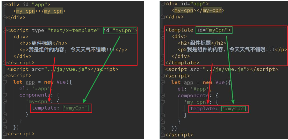 刚才我们通过语法糖简化了Vue组件的注册过程,另外还有一个地方的写法比较麻烦,就是template模块写法。如果我们能将其中的HTML分离出来写,然后挂载到对应的组件上,必然结构会变得非常清晰