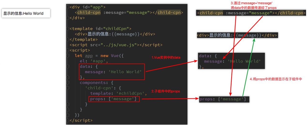 之前我们提到了子组件是不能引用父组件或者Vue实例的数据的。但是,在开发中往往一些数据确实需要从上层传递到下层: