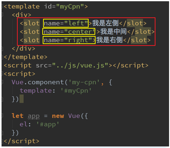 那么,外面在给插槽插入内容时,如何区分插入的是哪一个呢?这个时候,我们就需要给插槽起一个名字